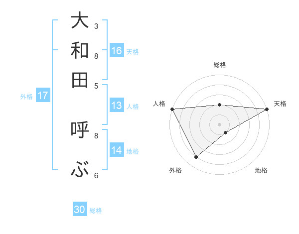 大和田 呼ぶさんを姓名の画数から五運を鑑定