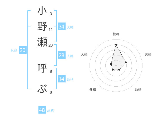 小野瀬 呼ぶさんの総格は48画の4点!