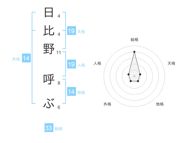 日比野 呼ぶさんを姓名の画数から五運を鑑定