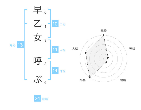 早乙女 呼ぶさんを姓名の画数から五運を鑑定