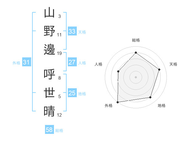 山野邊 呼世晴さんを姓名の画数から五運を鑑定
