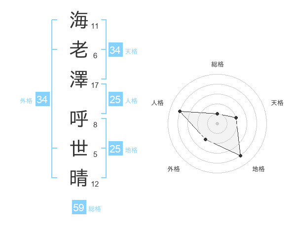 海老澤 呼世晴さんを姓名の画数から五運を鑑定