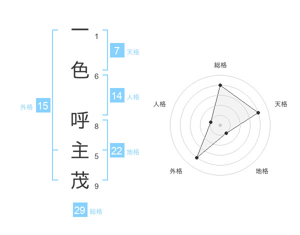一色 呼主茂さんを姓名の画数から五運を鑑定