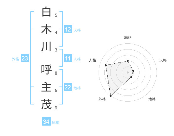 白木川 呼主茂さんを姓名の画数から五運を鑑定