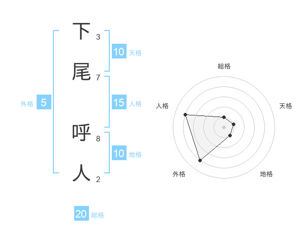下尾 呼人さんを姓名の画数から五運を鑑定