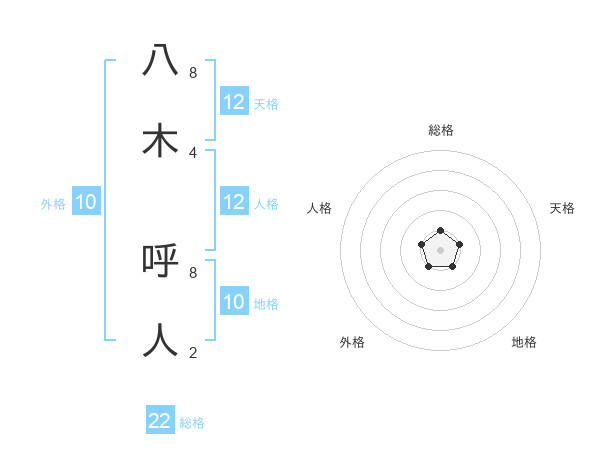 八木 呼人さんの総格は22画の1点!
