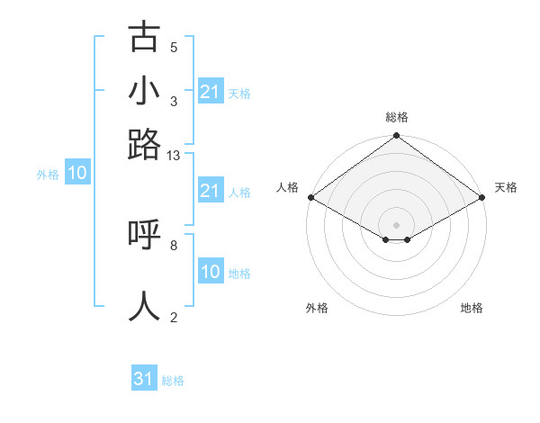 古小路 呼人さんの総格は31画の5点!