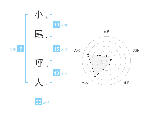 小尾 呼人さんの総格は20画の1点!