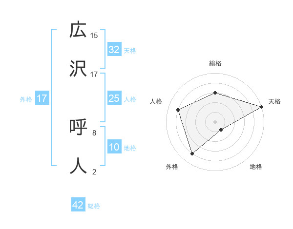 広沢 呼人さんの外格は17画の4点!