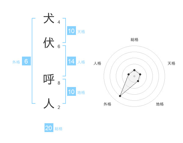 犬伏 呼人さんの総格は20画の1点!