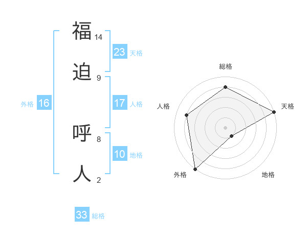 福迫 呼人さんを姓名の画数から五運を鑑定