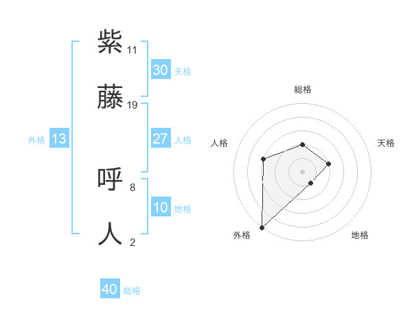 紫藤 呼人さんを姓名の画数から五運を鑑定