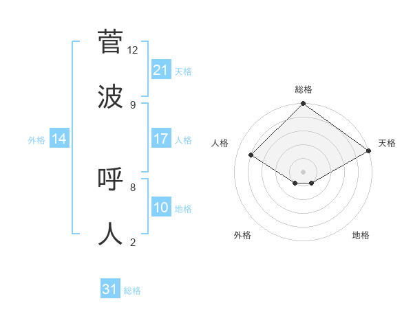 菅波 呼人さんを姓名の画数から五運を鑑定