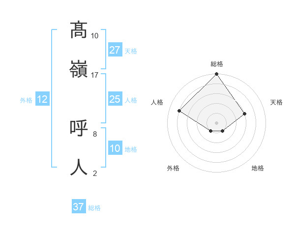 髙嶺 呼人さんの総格は37画の5点!