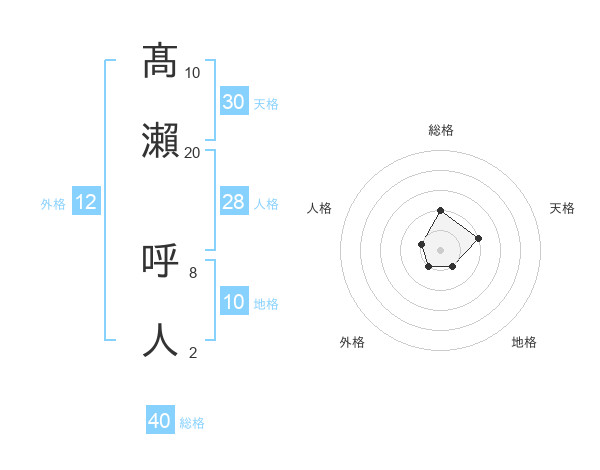 髙瀨 呼人さんの総格は40画の2点!