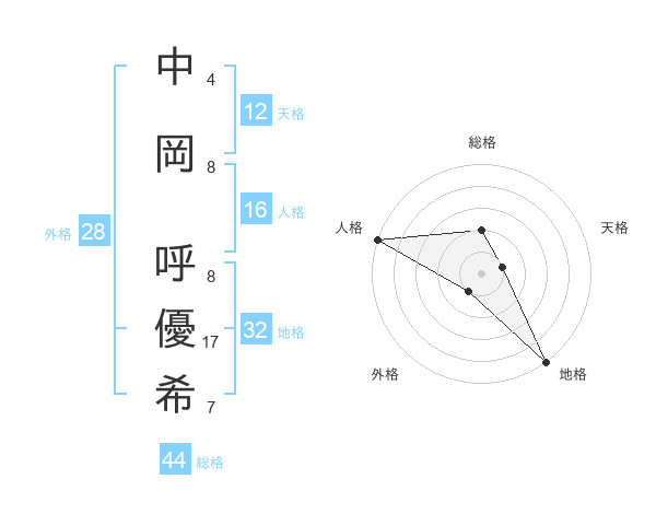 中岡 呼優希さんの総格は44画の2点!