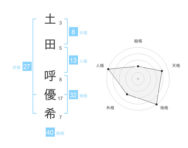 土田 呼優希さんの総格は40画の2点