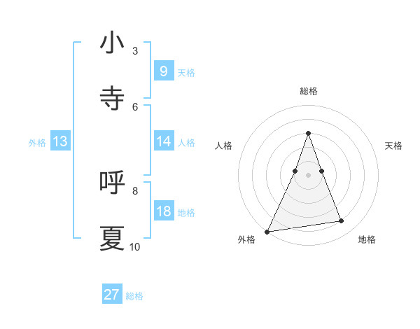 小寺 呼夏さんの外格は13画の5点!