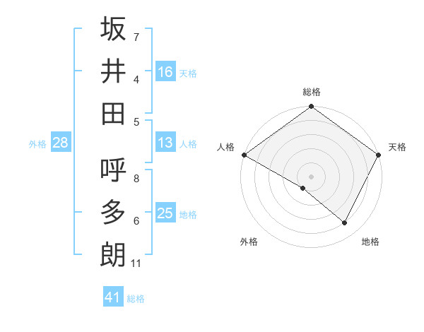 坂井田 呼多朗さんを姓名の画数から五運を鑑定