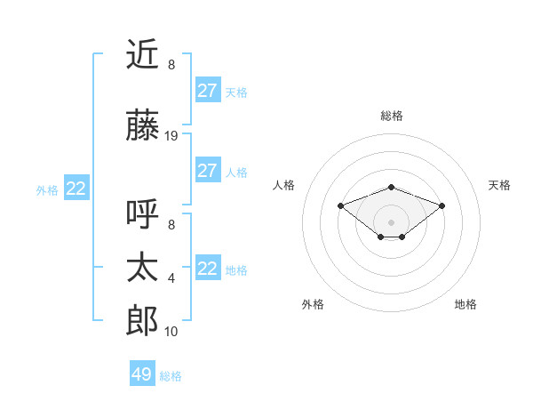 近藤 呼太郎さんの総格は49画の2点