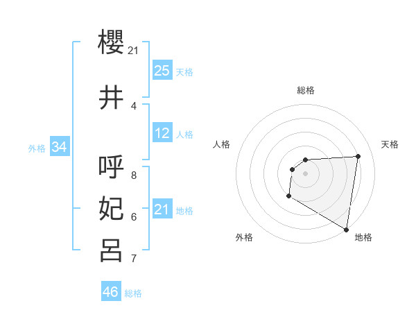 櫻井 呼妃呂さんの天格は25画の4点!