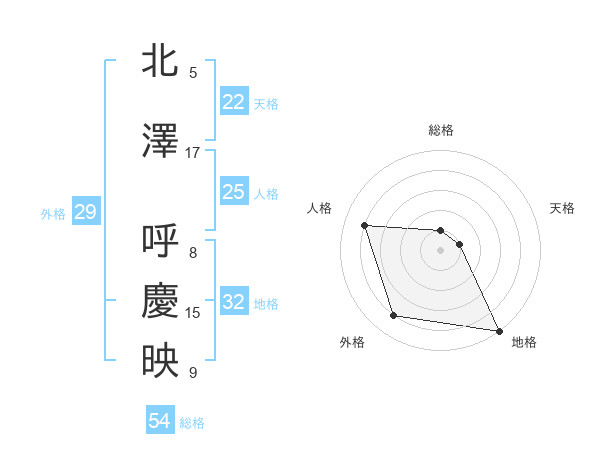 北澤 呼慶映さんを姓名の画数から五運を鑑定