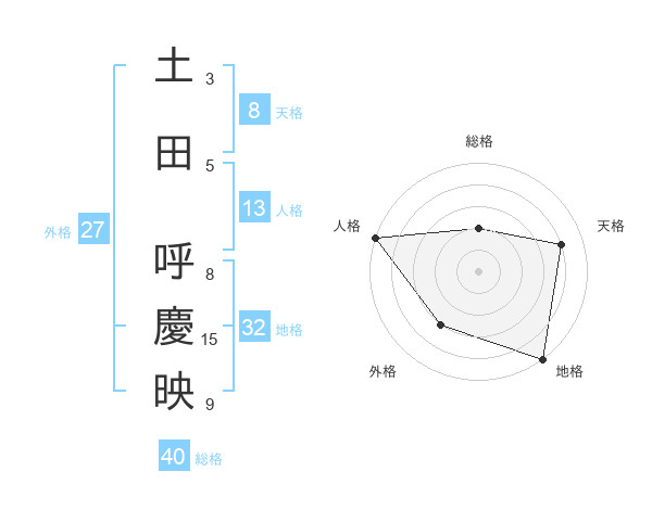 土田 呼慶映さんを姓名の画数から五運を鑑定