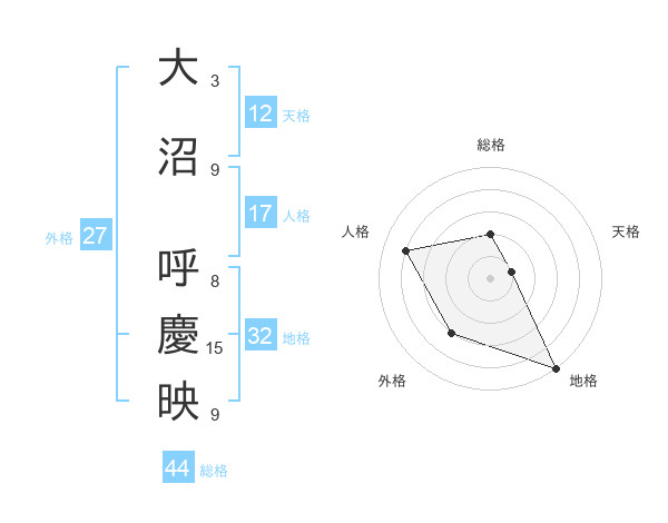大沼 呼慶映さんを姓名の画数から五運を鑑定