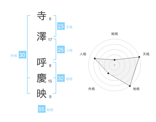 寺澤 呼慶映さんを姓名の画数から五運を鑑定
