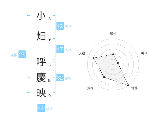 小畑 呼慶映さんを姓名の画数から五運を鑑定