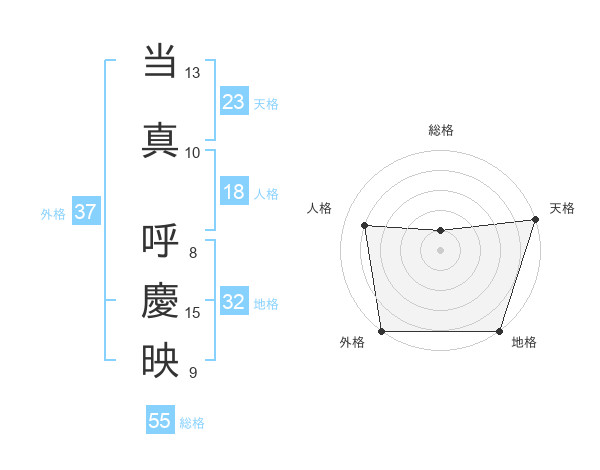 当真 呼慶映さんを姓名の画数から五運を鑑定