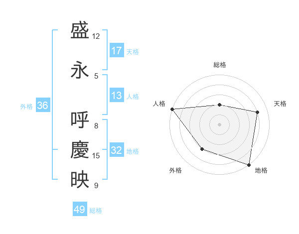 盛永 呼慶映さんを姓名の画数から五運を鑑定