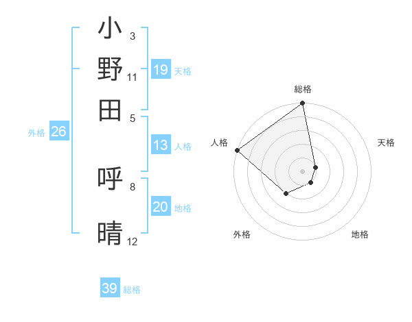 小野田 呼晴さんを姓名の画数から五運を鑑定