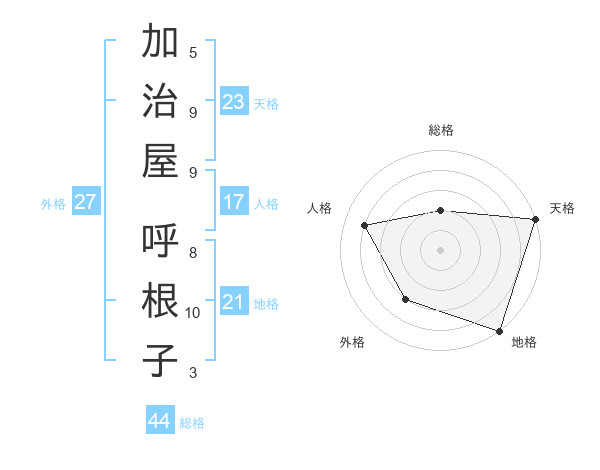 加治屋 呼根子さんの天格は23画の5点