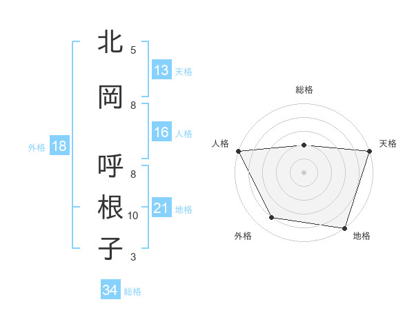 北岡 呼根子さんを姓名の画数から五運を鑑定