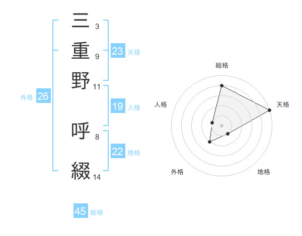 三重野 呼綴さんを姓名の画数から五運を鑑定