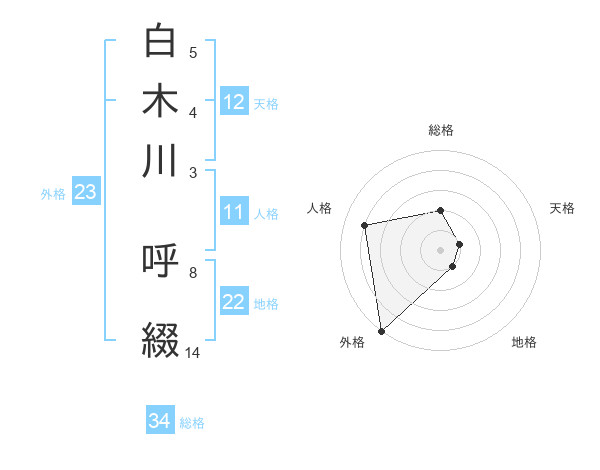 白木川 呼綴さんを姓名の画数から五運を鑑定