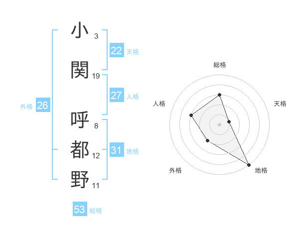 小関 呼都野さんを姓名の画数から五運を鑑定