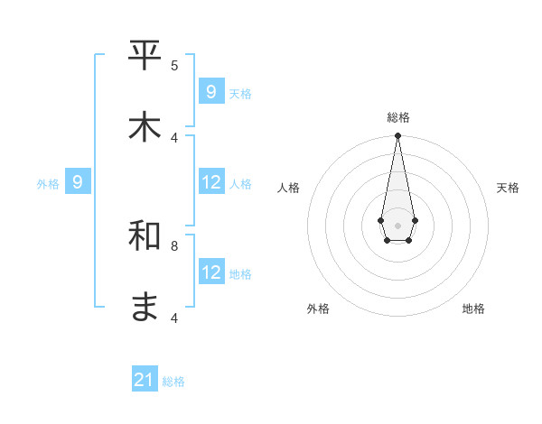 平木 和まさんの総格は21画の5点!