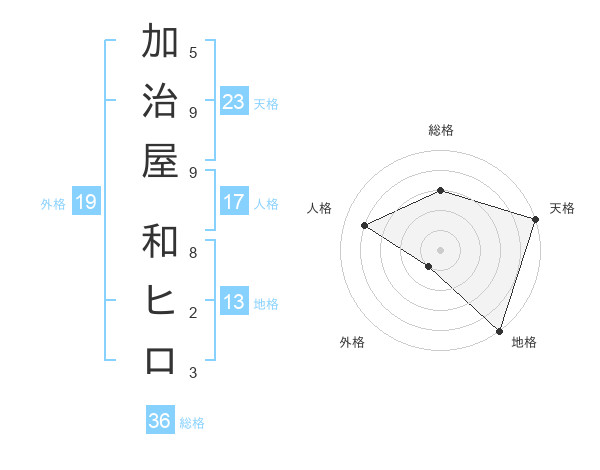 加治屋 和ヒロさんを姓名の画数から五運を鑑定