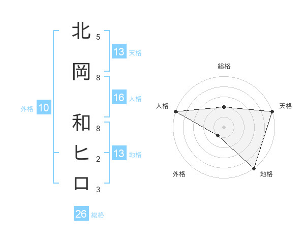 北岡 和ヒロさんの天格は13画の5点