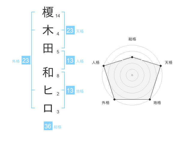 榎木田 和ヒロさんの天格は23画の5点!