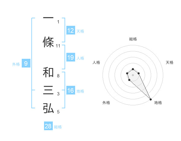 一條 和三弘さんの総格は28画の1点!