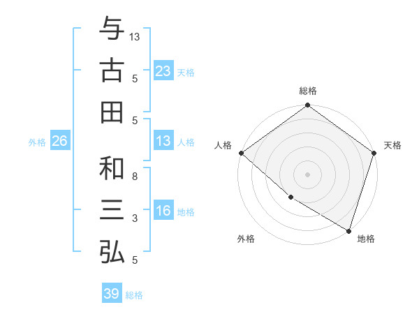 与古田 和三弘さんを姓名の画数から五運を鑑定