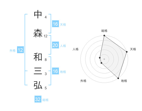 中森 和三弘さんを姓名の画数から五運を鑑定