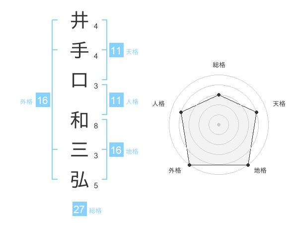 井手口 和三弘さんを姓名の画数から五運を鑑定