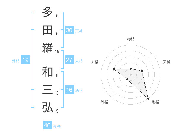 多田羅 和三弘さんの総格は46画の1点!
