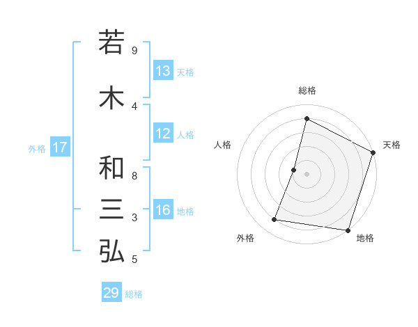 若木 和三弘さんを姓名の画数から五運を鑑定