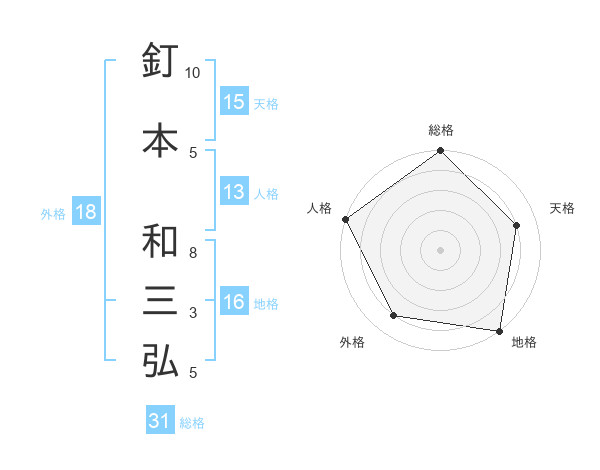 釘本 和三弘さんを姓名の画数から五運を鑑定