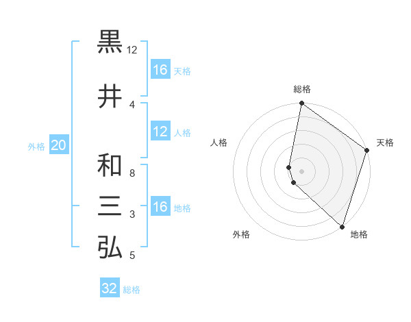 黒井 和三弘さんを姓名の画数から五運を鑑定